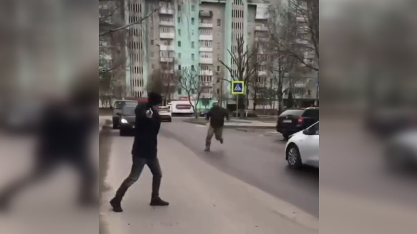 Обвинувачений намагався втекти від співробітників ТЦК, продовжуючи погрожувати зброєю, і здійснив два постріли у повітря.