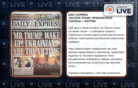Daily Express на обкладинці нагадала Трампу про обстріли України