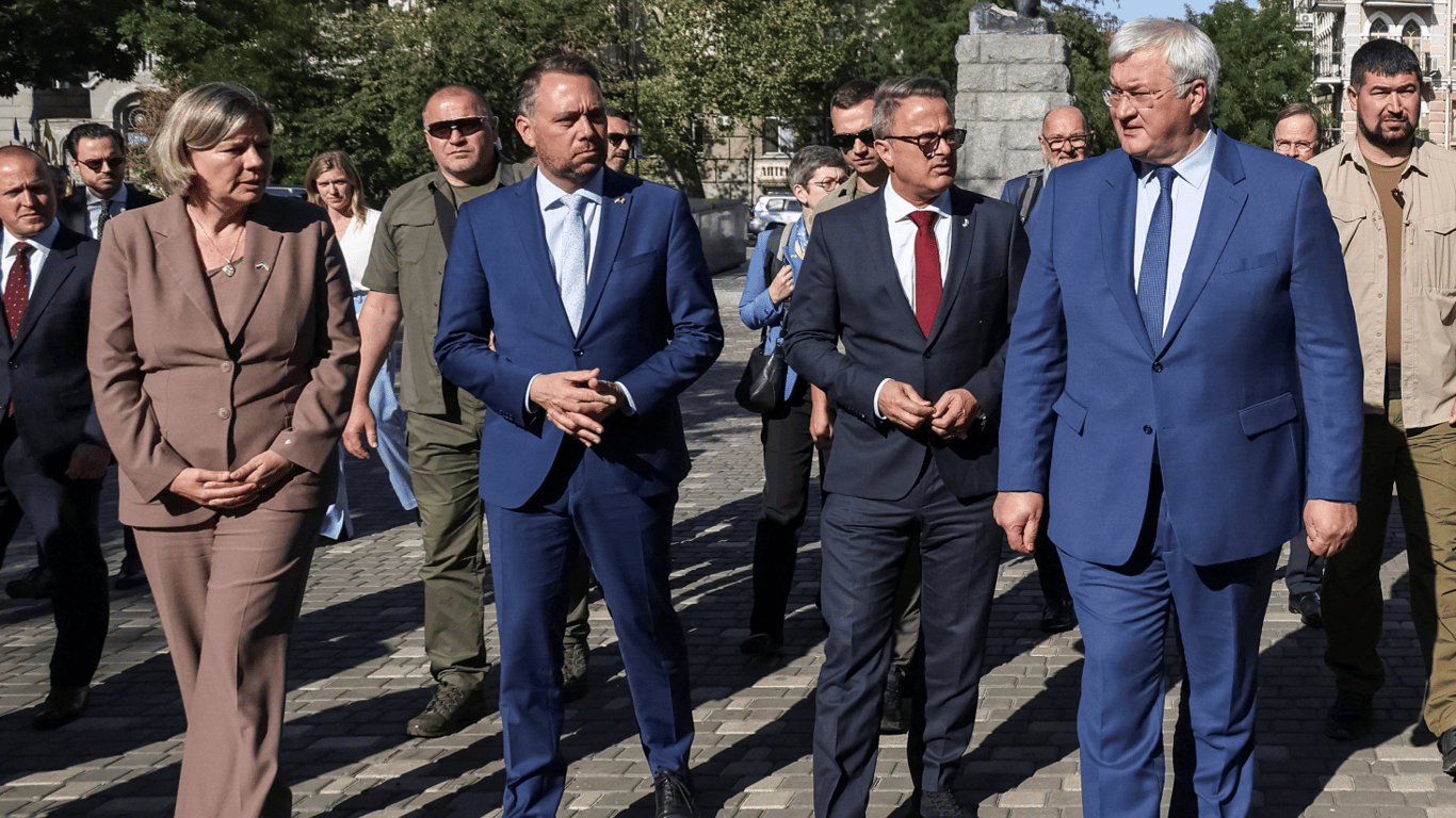 Ukrainian Foreign Minister Sybyha, Belgian Foreign Minister Preud’homme, Luxembourg Foreign Minister Bettel, and Director-General for European Cooperation at the Dutch Ministry of Foreign Affairs Bakker. Photo: REUTERS/Nina Lyashonok