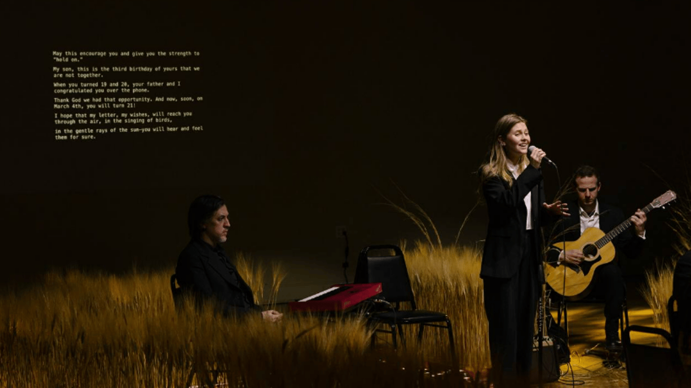Кульмінацією вечора став момент, коли у залі пролунав сигнал повітряної тривоги. Його почули саме й той час, коли три роки тому почалося повномасштабне вторгнення Росії в Україну.
