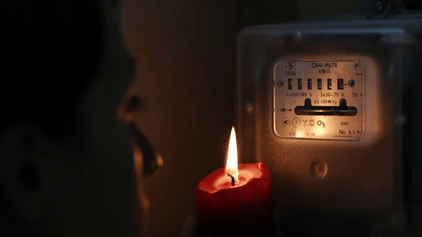 Людина зі свічкою перевіряє лічильник світла. Фото: УНІАН