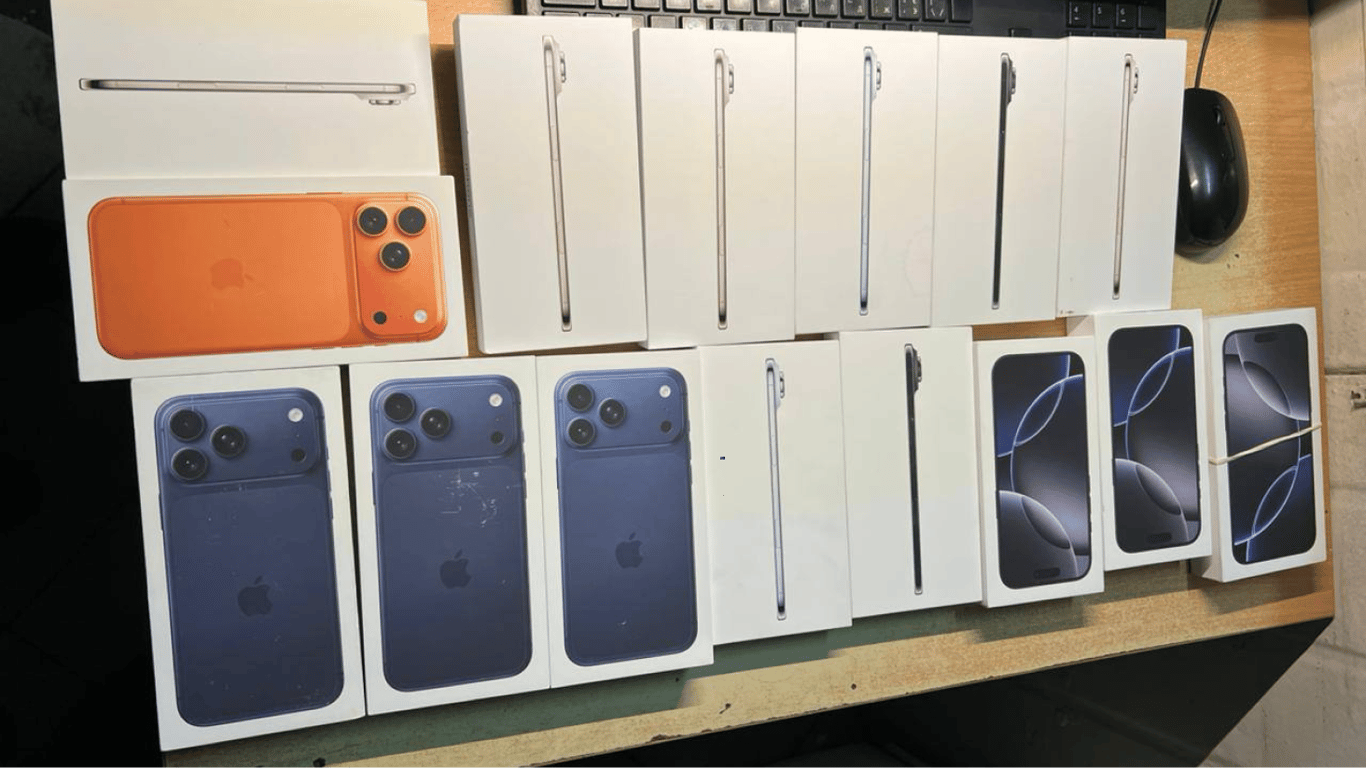 "15 из них последней серии: 7 IPhone 17 Pro Max и 8 iPhone air. Ориентировочная стоимость товаров — 1,5 млн гривен", — говорится в сообщении.