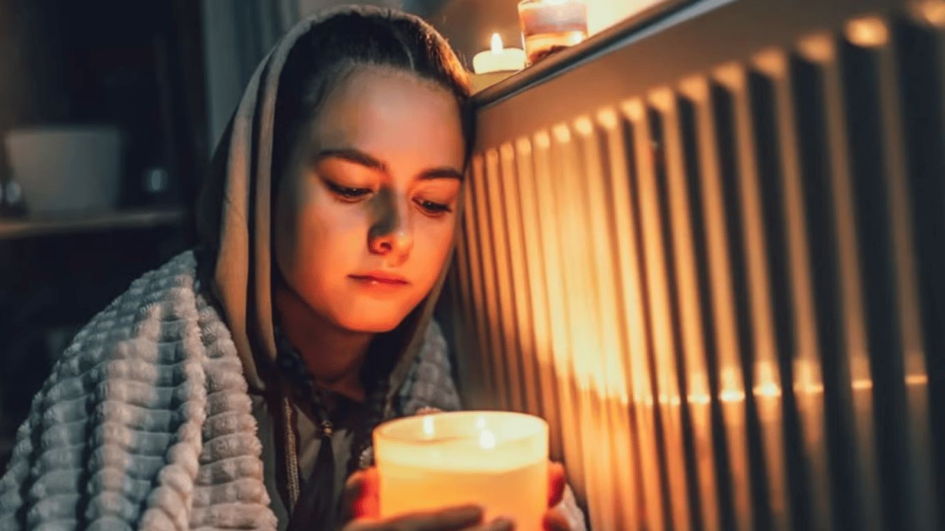 Девушка со свечой греется возле батареи. Иллюстративное фото: УНИАН