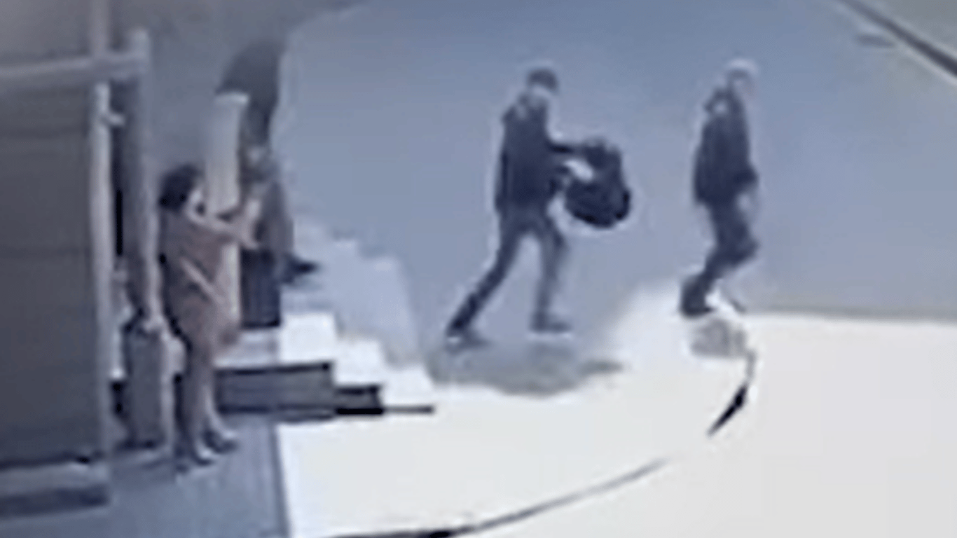 На видео видно, как женщина стоит у входа в здание, из которого выходит Сергей и еще двое мужчин. Как только активист переступил порог — она подняла пистолет и выстрелила в него.