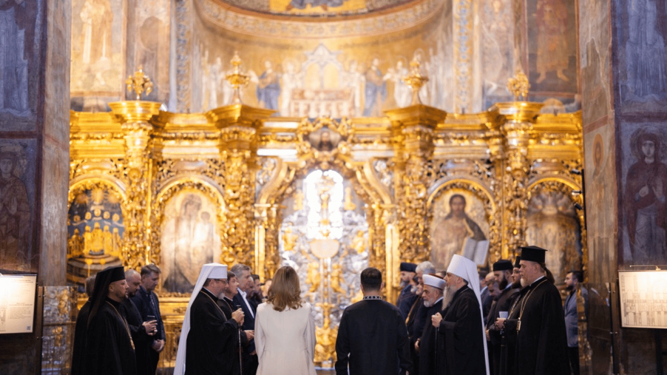 "Совместная молитва в Софийском соборе за мир для наших людей, за мир для Украины. Молимся за наших воинов, за будущее нашего государства — безопасное, мирное будущее", — написал Зеленский.