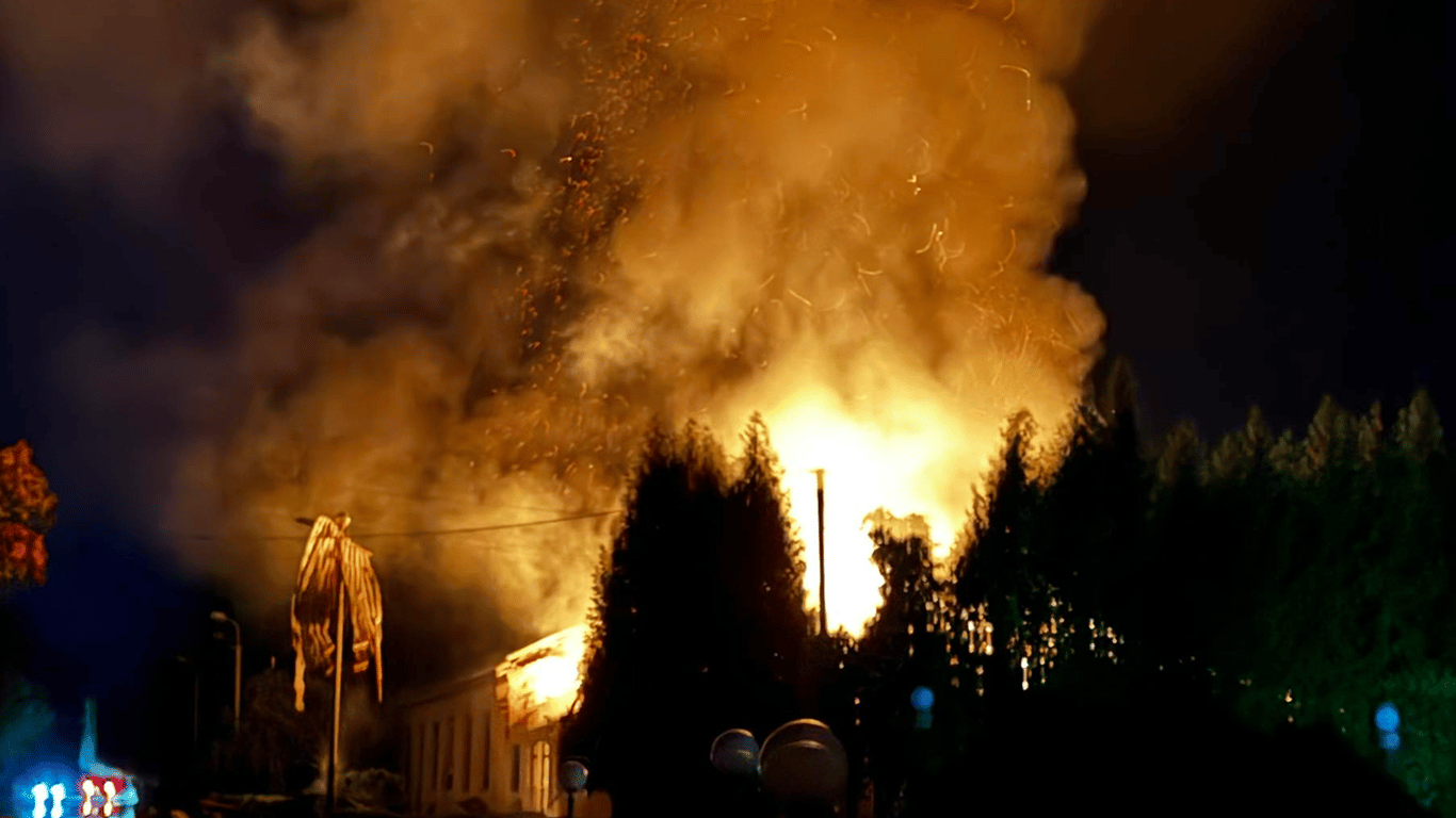 Внаслідок удару відбулось загоряння нежитлового будинку та пошкоджено прилеглі будинки.