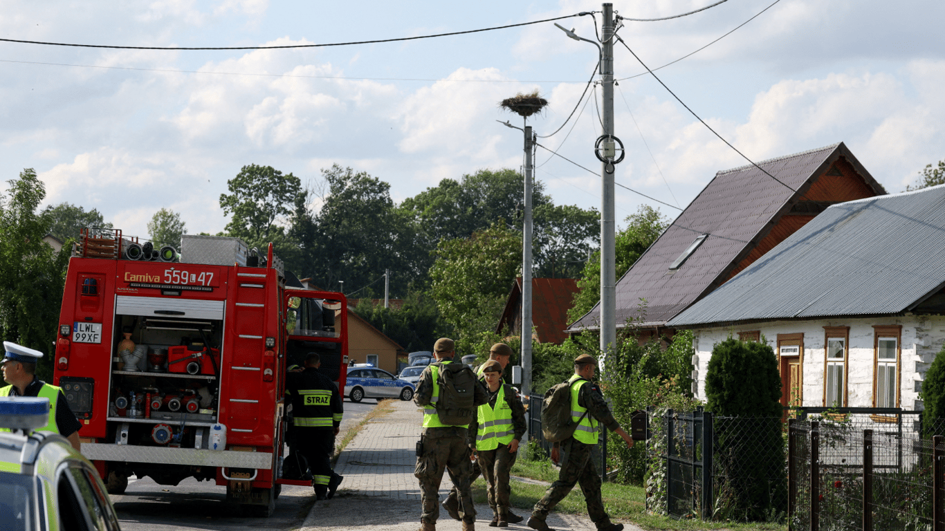 Мазовецька поліція уточнила, що уламки в полі побачив місцевий житель. Поруч розташований порожній будинок. Поліціянти забезпечили охорону місця, повідомили Військову поліцію та прокуратуру.