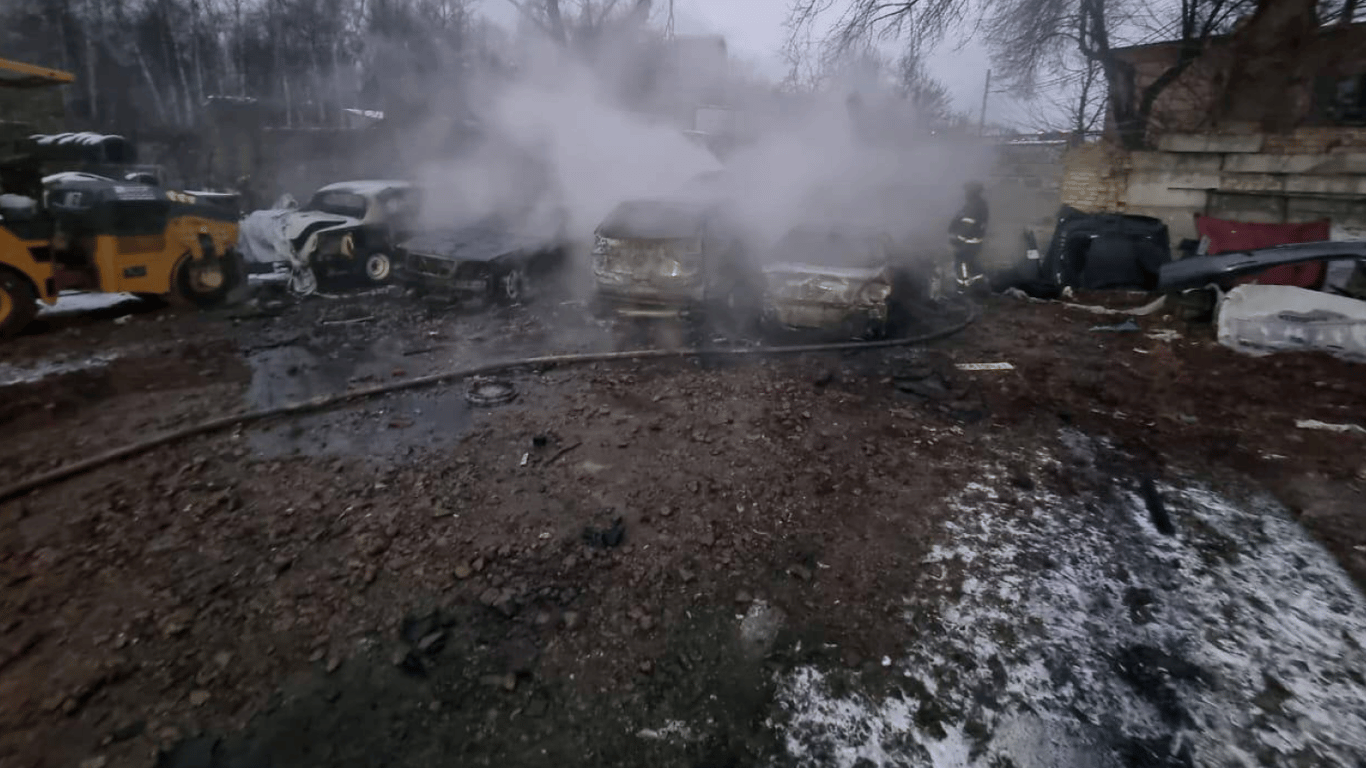 Також відбулося загоряння авто у Дарницькому районі внаслідок падіння уламків дрону на проїжджу частину дороги. Було зафіксовано пошкодження припаркованих авто.