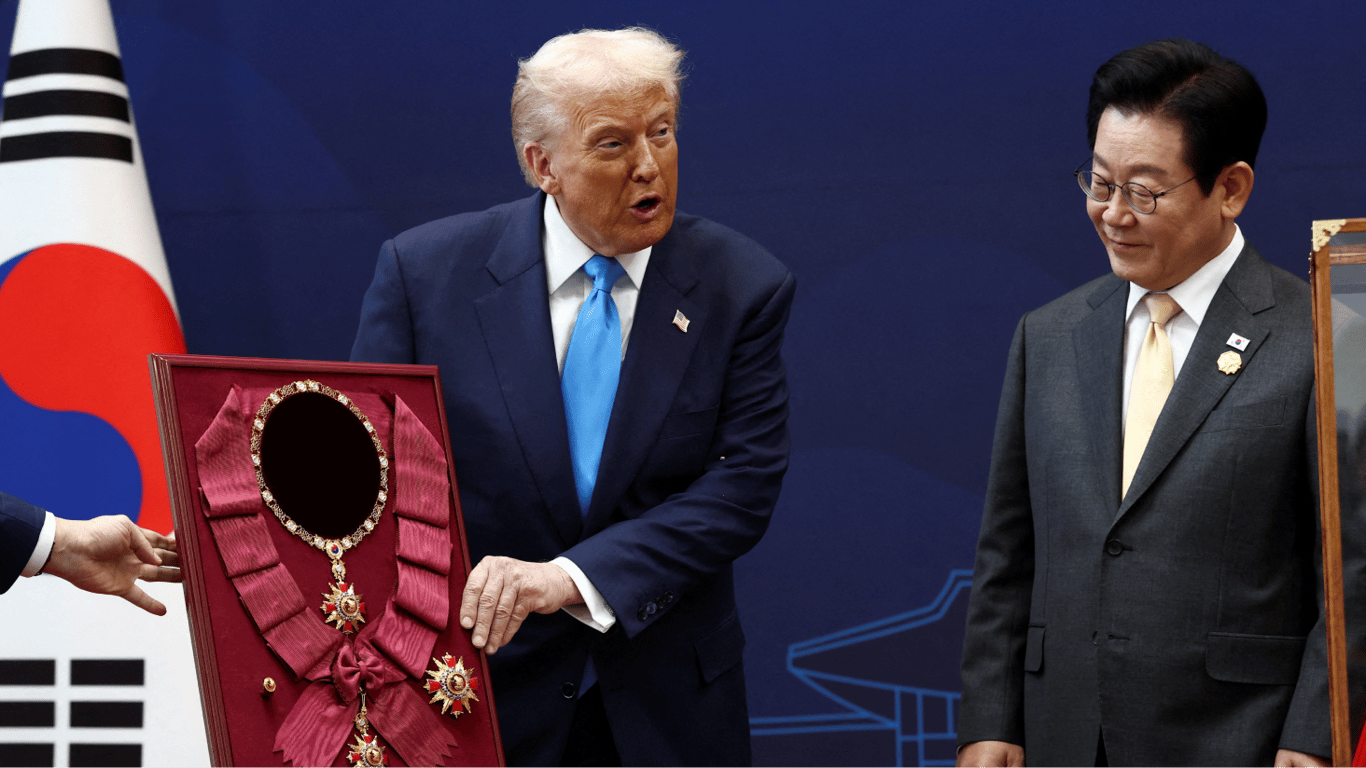 Дональд Трамп прибув до Південної Кореї 29 жовтня в рамках свого турне Азією. Раніше він відвідав Малайзію та Японію. Під час цього візиту президент Південної Кореї Лі Чже Мьон нагородив Трампа найвищою нагородою країни — "Великим орденом Мугунгва" — на знак його ролі як "миротворця" на Корейському півострові.
