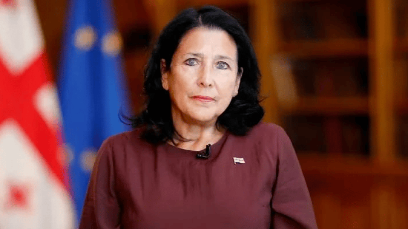 "Хочу звернутися до Володимира Зеленського — звідси, від імені народу Грузії, і сказати йому, що ми знаємо, що він бореться за нас і переможе. І ми разом підемо до Європи", — заявила глава держави.