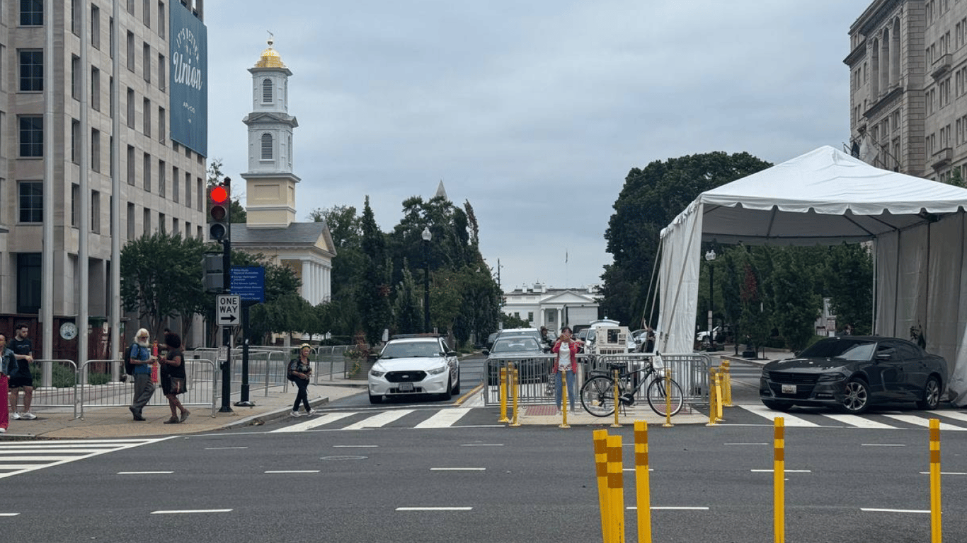 Журналістка Новини.LIVE Уляна Бойчук з місця подій повідомляє, що поблизу Білого дому посилюють заходи безпеки перед зустріччю лідерів України та США, а також представників європейських країн.